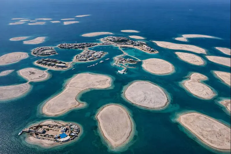 Each island was designed with specific dimensions, typically ranging from 14,000 to 42,000 square meters. The islands are separated by 100-meter-wide channels to allow for boat navigation and water circulation. Engineers constructed rock breakwaters around the entire archipelago to protect the islands from erosion and maintain their shapes.