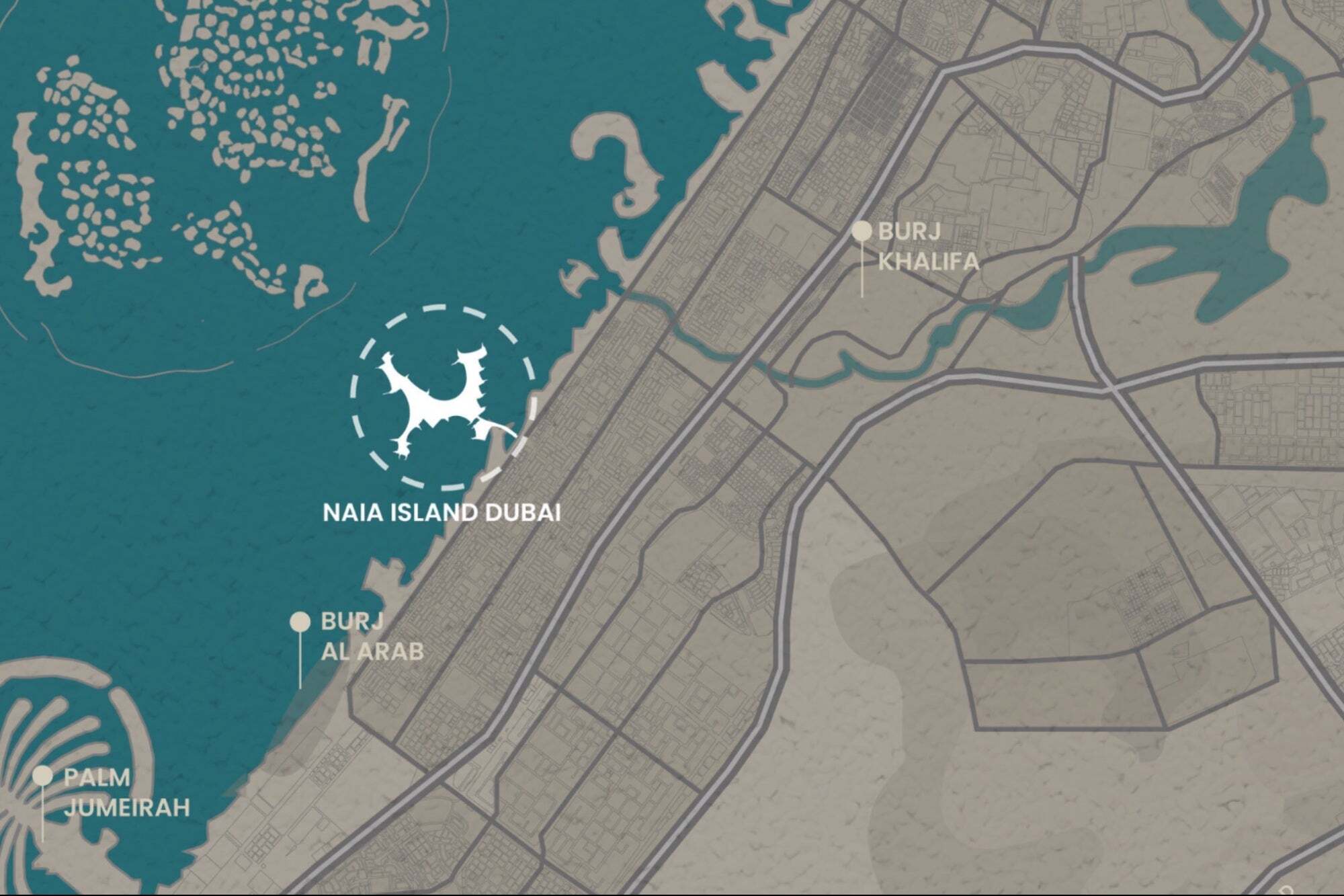 Located just off the Jumeirah coastline and seamlessly connected to Dubai’s major roadways, the island is envisioned as a low-rise, resort-style masterplan. Open green spaces and coastal terrain complement the architecture, offering unobstructed views of the city’s skyline and sea.